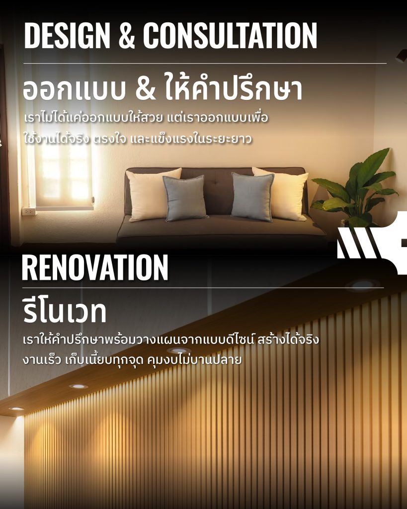 สนใจงานก่อสร้าง / รีโนเวท / ออกแบบครบวงจรในราคาเป็นกันเองแบบ